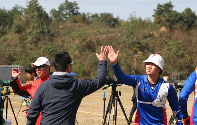 男子反曲弓团体赛,预赛排名榜首的四川队先后战胜江西队和西部战区陆军队顺利跻身四强。半决赛中四川队取得4比0的领先优势,但此后两轮被预赛排名第5位的新疆队扳平比分,最终在残酷的加赛中1环只差惨遭大逆转。