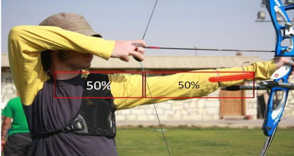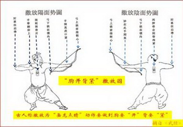 举弓开始对称用力,直到撒放动作的结束。撒放使对称用力达到最高峰。