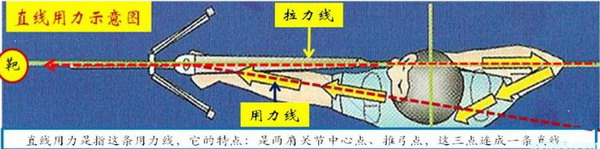 “直线用力”是射箭运动的基本用力形式,“对称直线用力”是射箭运动的用力特点。
